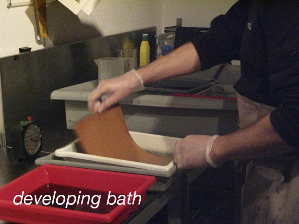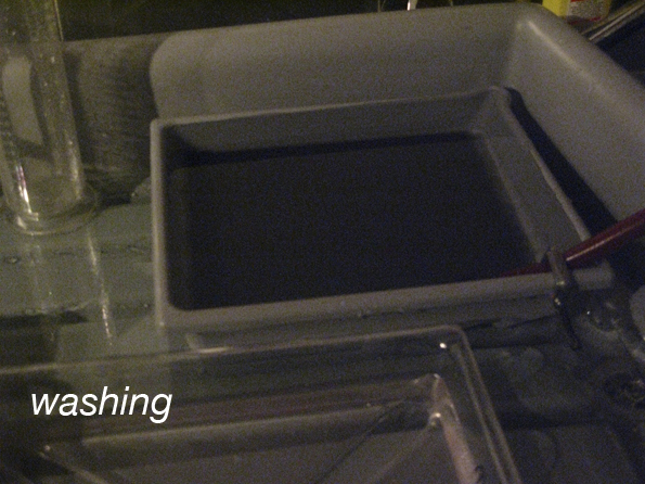 When all chemicals are mixed to temperature and poured into the dishes then the lights are turned off and the processing begins.